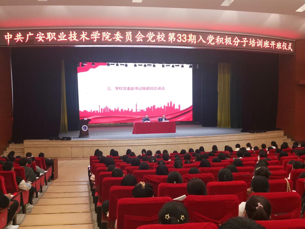 11月20日,中共bv伟德国际1946委员会党校第33期入党积极分子培训班开班仪式在杏坛举行。学校党委副书记陈鹏出席开班仪式并讲话。