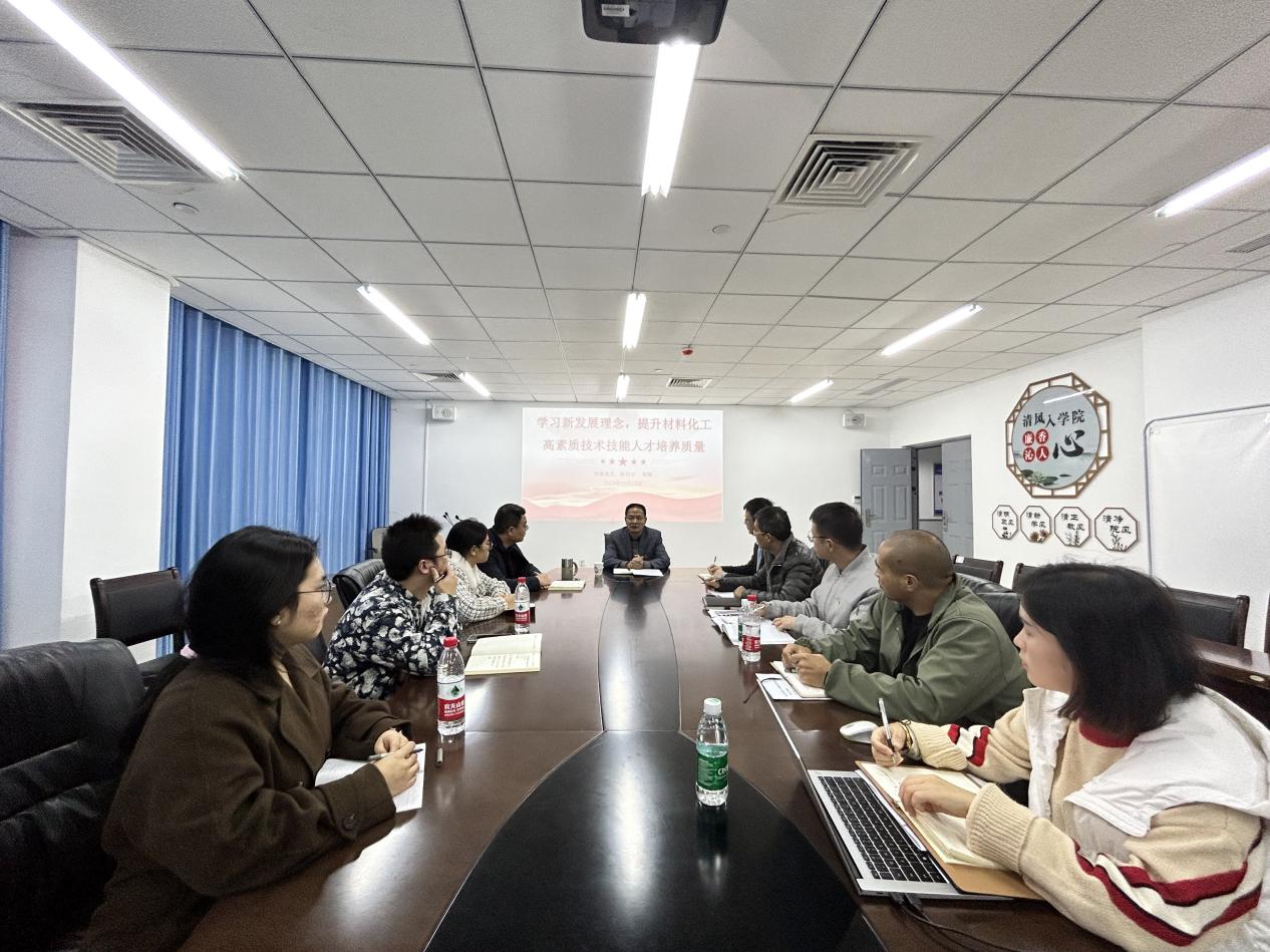 袁驰强调,全面理解和深刻把握新发展理念,要保证思想上坚定、理念上贯彻、实践上遵循、方法上运用。新材料与化学工程学院作为学校发展的重要支撑,要把新发展理念完整、准确、全面贯穿到学院发展的全过程和各领域,不断推动学院高质量发展。