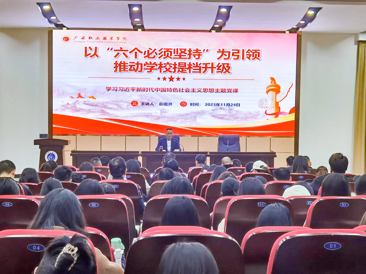 11月24日上午,学校党委委员、副校长袁祖洪以《以“六个必须坚持”为引领,推动学校提档升级》为题,为机关三支部、师范学院党总支师生党员讲授主题教育专题党课。
