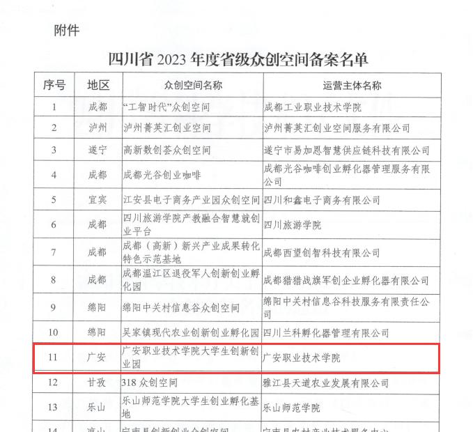 近日,四川省科技厅公布了2023年省级众创空间名单,bv伟德国际1946大学生创新创业园成功备案省级众创空间。这是伟德省级“双高计划”建设在省级大学生创新创业平台建设方面取得的重要成果。