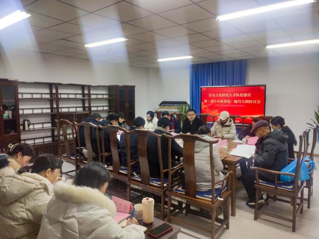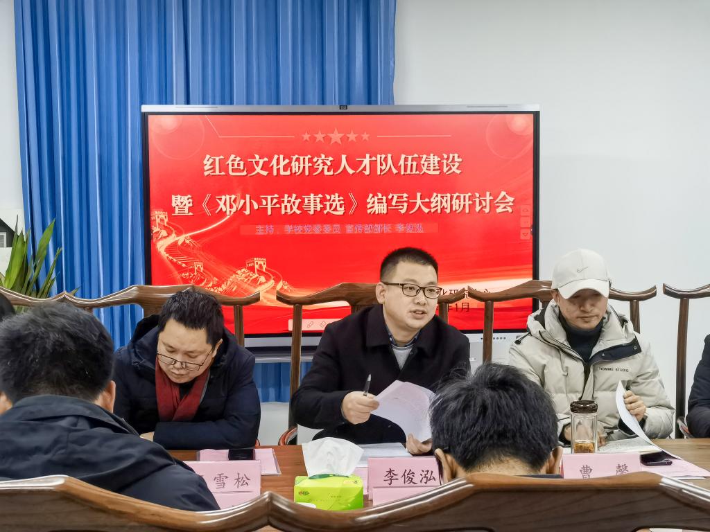 1月17日下午,学校党委委员、宣传部部长李俊泓主持召开了“红色文化研究人才队伍建设暨红色文化读本编写大纲研讨会”,会议在红色文化研究中心举行。参加会议的有读本编委会部分成员,学校红色文化研究人才库的部分同志,特邀广安市社科联王曲波主任、邓小平干部学院颜国庆老师出席了会议。