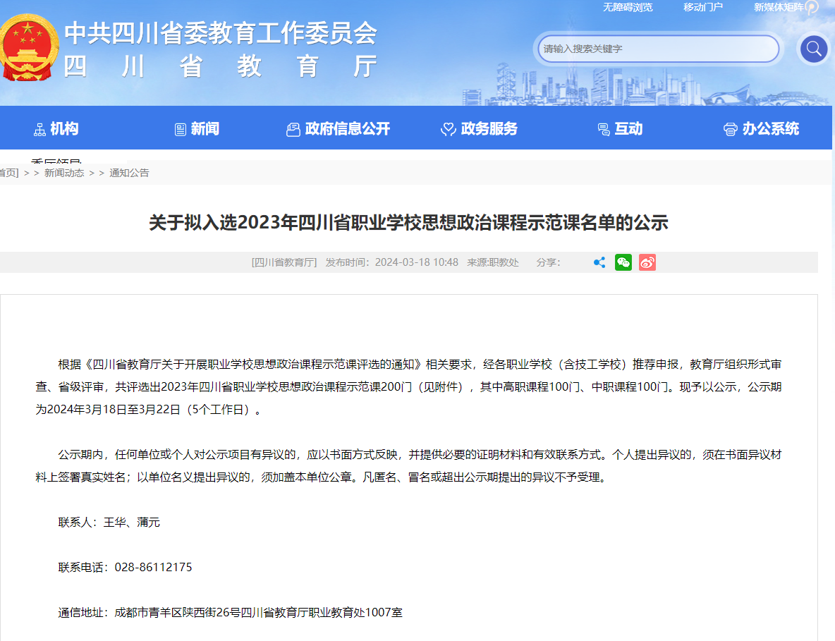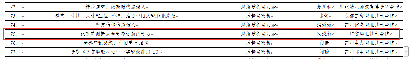近日,四川省教育厅公布了拟入选2023年四川省职业学校思想政治课程示范课名单,伟德马克思主义学院思政课教师闫泓竹的思政课《让改革创新成为青春远航的动力》成功入选。