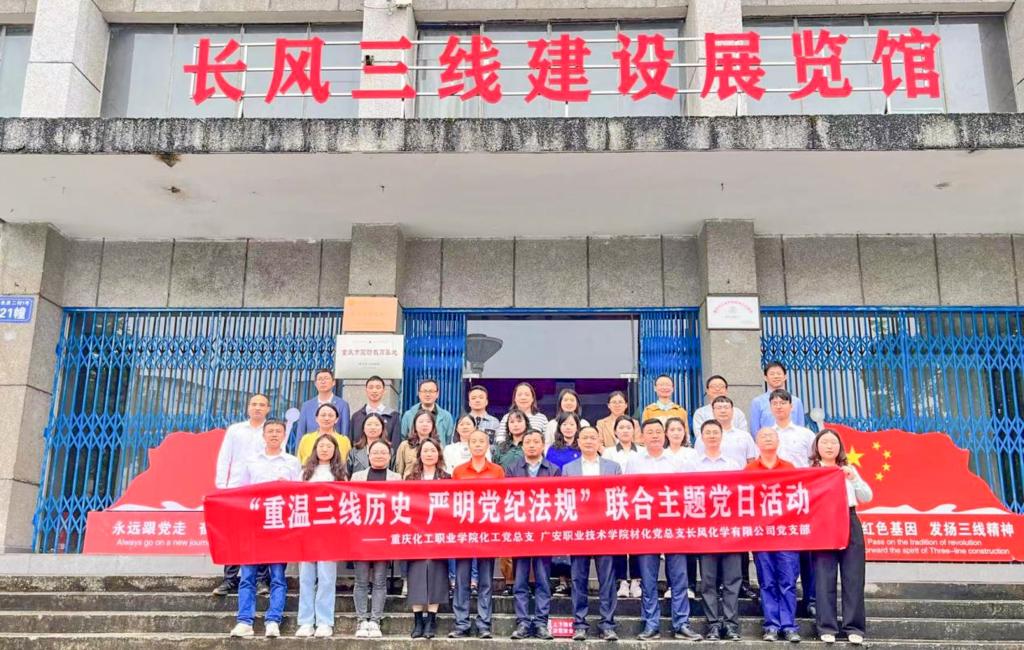 会后,学校新材料与化学工程学院党总支与重庆化工职业学院化学工程学院党总支联合开展了“重温三线精神,严明党纪法规”主题党日活动。
