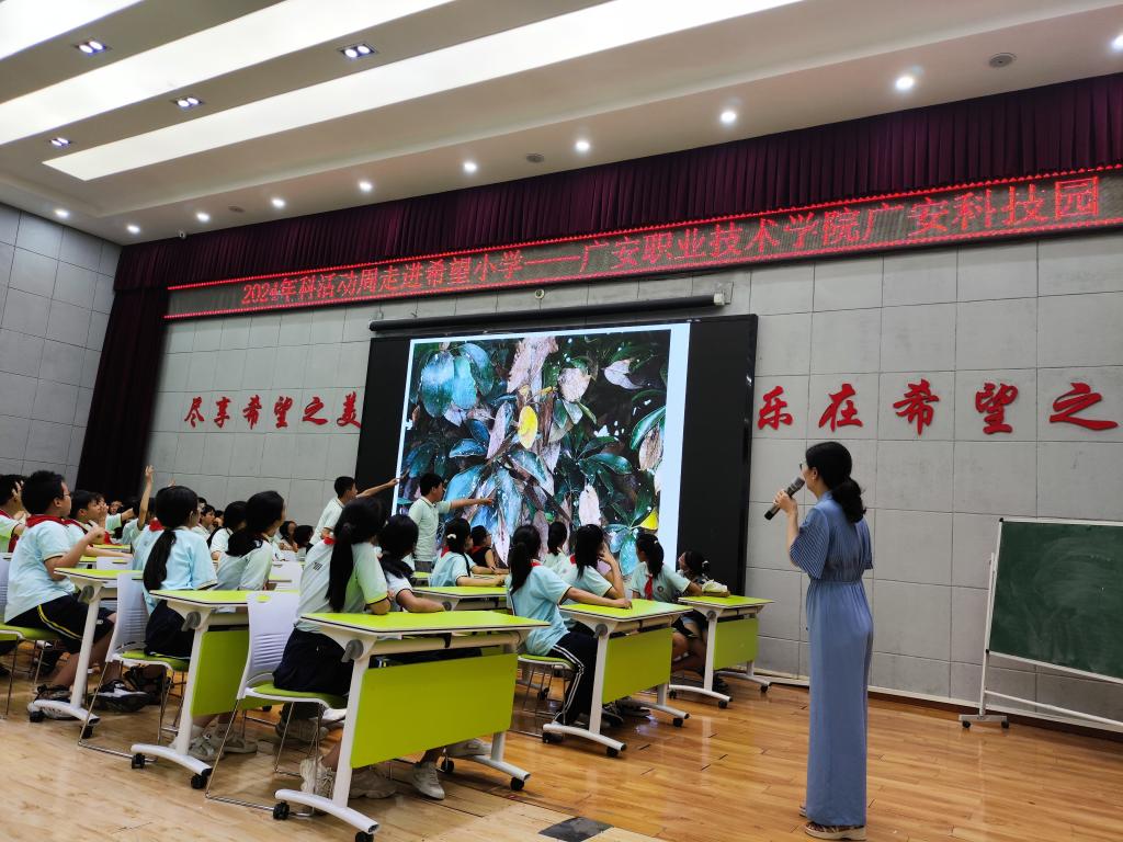 在科普进校园讲座活动中,伟德唐宇翀教授走进广安希望小学,以我国著名昆虫学家周尧“爱国、敬业、乐群、惜时”人生经历,引导学生树立爱国情怀和科学创新意识。