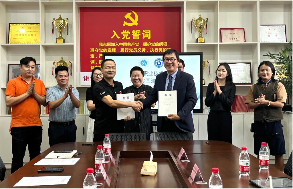 袁驰代表学校对金敬植院长一行到访伟德表示欢迎,希望两校加强国际交流与合作,共同培养多能一专的高素质技能型人才。清州大学国际交流处宋智英女士对清州大学基本情况进行了介绍,彭丽副处长介绍伟德国际交流合作相关情况,在交流发言中,金敬植院长对来到邓小平先生家乡非常高兴,也表达了两校应建立长期友好关系,为培养优质的学生而共同努力。随后,金敬植院长和袁驰副校长分别代表两校签订了国际交流合作意向书。