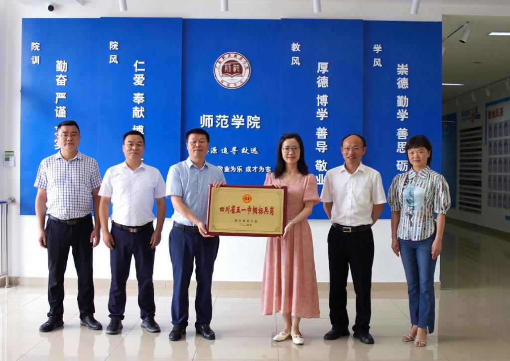 7月4日下午,市总工会党组成员、市教科文卫工会主席李松林来伟德为荣获“四川省五一巾帼标兵岗”称号的师范学院学前教研室授牌。市总工会女职工部负责人周敏,学校党委委员、工会主席、统战部长杨建华等出席授牌仪式。