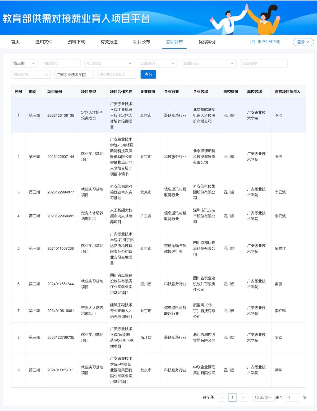 近日,教育部发布了《关于公布教育部第三期供需对接就业育人项目立项名单的通知》(教就业司函〔2024〕23号),经校企对接、用人单位申报、专家审核、立项单位信息核查等流程,伟德共有9个项目获准立项,实现新的突破。