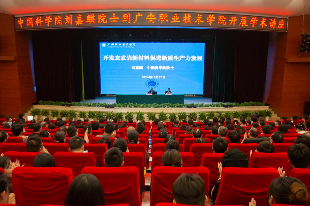 10月25日下午,应学校邀请,中国科学院刘嘉麒院士为伟德师生作题为“开发玄武岩新材料促进新质生产力发展”的学术讲座,讲座由学校党委书记王冬霞主持。全体在家校领导、四川玄武岩纤维新材料研究院(创新中心)全体人员和师生代表800余人现场聆听了讲座。