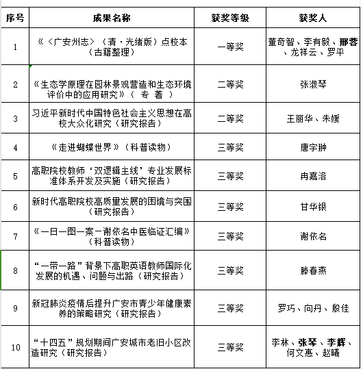 近日,广安市人民政府发布《关于公布广安市第十一次社会科学优秀成果的通知》(广安府函〔2024〕67号),表彰了广安市第十一次社会科学优秀成果获奖。此次获奖名单中伟德共有10项成果获奖,其中一等奖1项、二等奖2项、三等奖7项,获奖数位居全市榜首。该奖项是广安市社会科学领域级别最高、影响最大的政府奖项,每两年评审1次,是展示全市社会科学研究水平、研究成果、研究力量的重要平台。