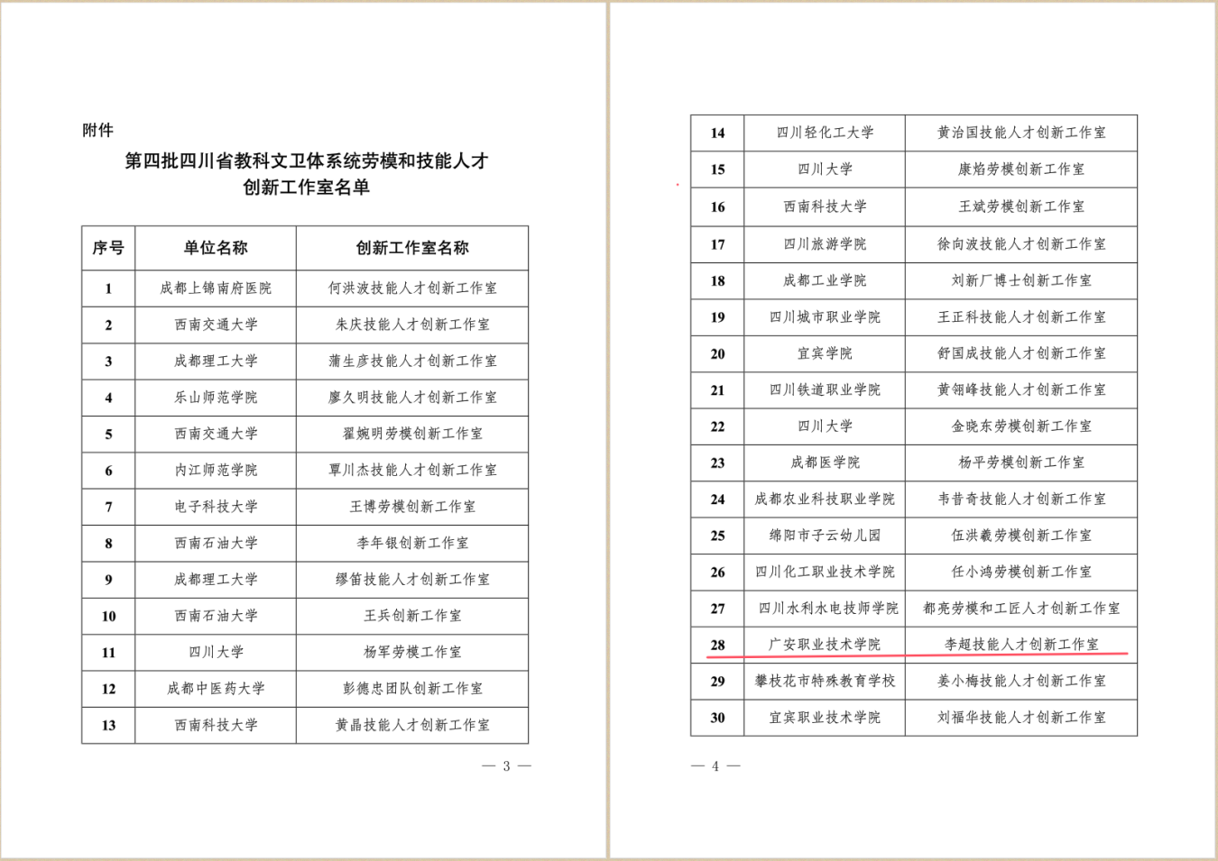 近日,四川省教科文卫工会下发《关于确认第四批四川省教科文卫体系统劳模和技能人才创新工作室的通知》,确认30个“第四批四川省教科文卫体系统劳模和技能人才创新工作室”。伟德电子与信息工程学院李超技能人才创新工作室获此殊荣。