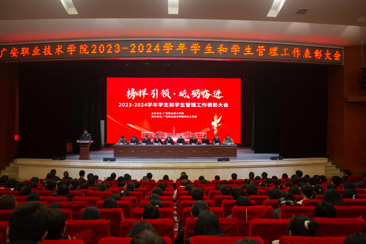 12月25日下午,学校在杏坛举行2023-2024学年学生和学生管理工作表彰大会,对过去一年来学生中涌现出来的各类先进集体和优秀个人进行表彰。学校党委委员、副校长冉嘉洛,教务处处长甘华银,各二级学院党总支书记、副书记及学生科人员,全体辅导员和表彰学生代表以及各年级学生代表参加了此次大会。会议由学工部部长黄宏芮主持。