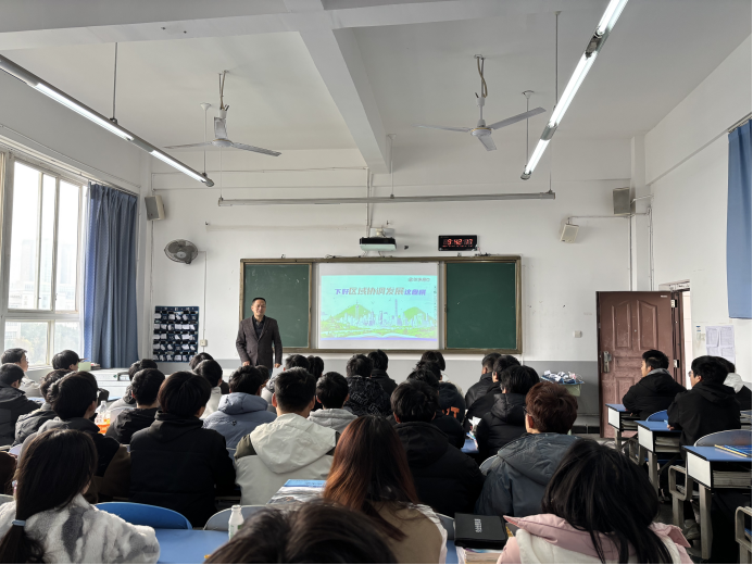 12月31日上午,学校党委委员、副校长袁驰在致用楼424教室,为广安技师学院师生作了以“下好区域协调发展这盘棋”为主题的形势与政策报告,学院2024级新能源汽车检测与维修1班全体同学及部分教师代表参与了此次报告会。