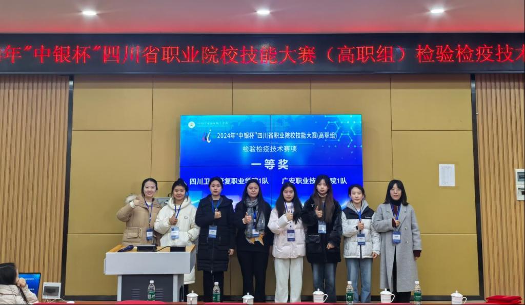 检验检疫技术赛项比赛内容包含形态学、理论知识、核心技能三个模块,对接行业标准,综合考察学生对临床基本检验、生物化学检验、微生物学检验、免疫学检验、血液学检验和寄生虫学检验中理论知识和核心技能的掌握情况,以及在整个比赛过程中展现出来的生物安全意识、标准化操作能力、团队合作、人际沟通、分析和解决问题的职业素养等。经过激烈的角逐,由杨曼妮、向丹老师指导的医学检验技术专业学生何青容、查文慧、王姊仪荣获一等奖。