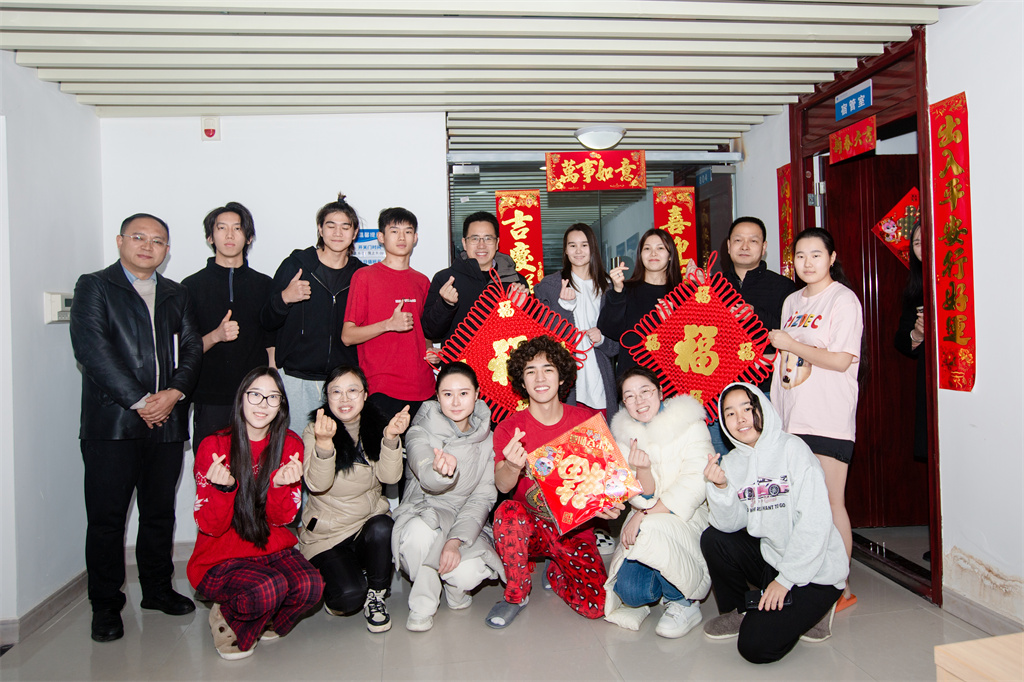 王义全向留校留学生和宿舍管理人员致以诚挚的祝福和关心。他表示,春节是中华民族的传统佳节,是中国人民家庭团聚的日子,学校非常理解身在异国他乡学子的思乡之情,特意为大家准备了新春慰问礼包,以此表达关爱,也希望远方的父母能安心、放心。他强调,学校相关部门要切实做好留学生寒假留校的各项安全保障工作,确保学生们在中国过一个平安的春节。慰问活动中,王义全贴心地为留学生介绍了春节习俗,并与留学生们一起贴春联、挂中国结,营造浓厚的新春氛围。