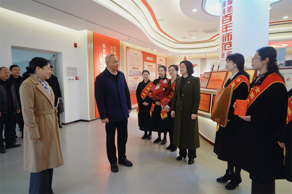3月5日上午,市委常委、统战部部长、市总工会主席文阁、市妇联党组书记、主席周晓芹一行莅临伟德,为荣获“全国巾帼文明岗”称号的集体授牌,并开展女教职工慰问活动。校党委书记王冬霞、副校长冉嘉洛、工会主席杨建华等陪同参加活动,巾帼文明岗代表周燕、贺雪萍、陈香帆等参与授牌仪式。