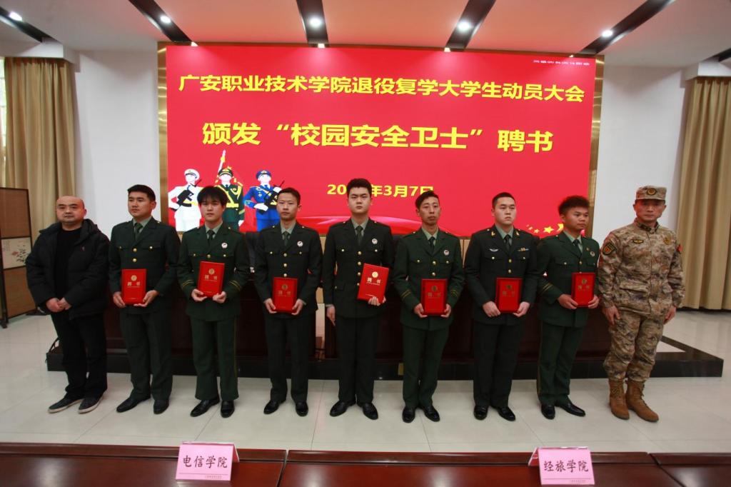 会议在庄严的国歌声中拉开帷幕,会上组织学习《bv伟德国际1946退役复学学生工作考核管理办法(试行)》,颁发了“校园安全卫士”聘书,办法的制定旨在体现对退役复学大学生的关心关爱,激励他们永葆军人本色,为学校建设发展作出应有贡献。