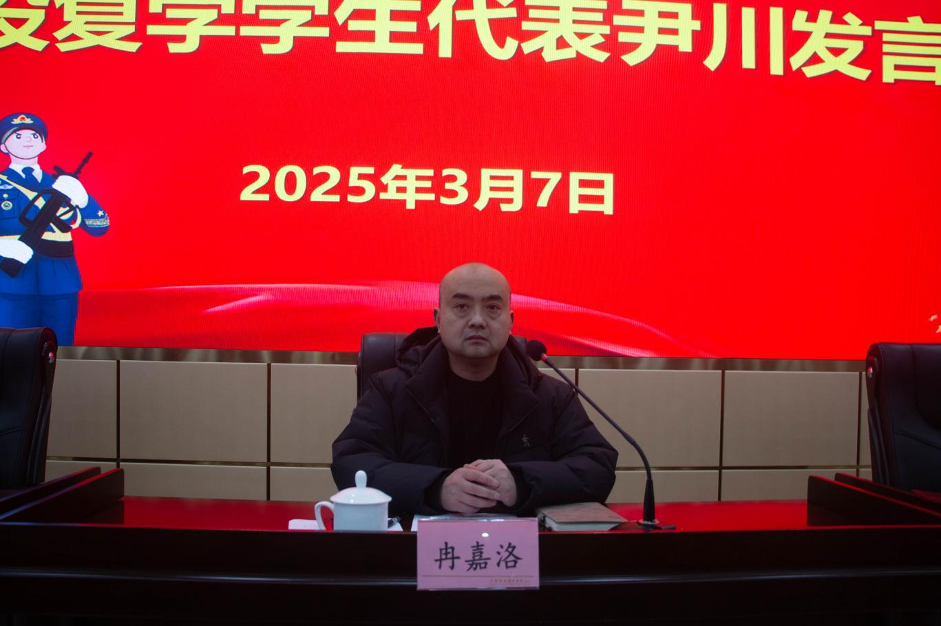 冉嘉洛代表学校向光荣退役、重返校园的同学们表达了崇高的敬意和热烈的欢迎,并语重心长地向退役复学学生提出三点希望:一是要继续保持和发扬部队的优良传统和作风,为同学们树立榜样。二是要以身作则,遵守学校的规章制度,维护学校的良好秩序。三是要积极参与学校平安校园建设,发挥好军人的敏锐性和责任感,以军人的担当和勇气,维护校园的正义和尊严,努力学习,积极进取,为学校的发展作出更大贡献。