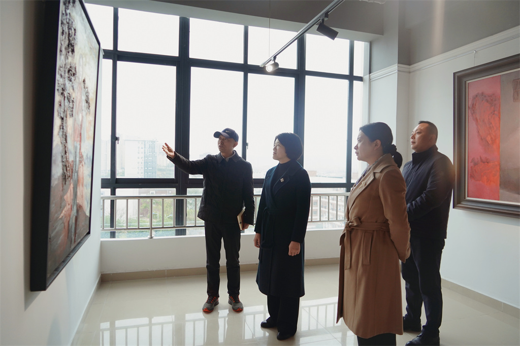 首先,马克思主义学院院长石乾福汇报了伟德思政课程开设、师资队伍建设、思政精品项目等方面情况,重点从伟德牵头的大中小学思政课一体化建设工作的政策精神、学校做法、工作推进、成果展示、“习语润心”思政品牌建设等特色工作进行了汇报。接着,一行人到思政课第二课堂——广安红岩英烈主题油画展厅参观。红色文化研究中心主任曹馨就油画故事背景、英烈事迹、创作构思等方面为随行领导进行了讲解。石乾福结合基地资源的使用、大中小学思政课一体化建设要求以及资源开发利用等方面进行了补充说明。洪丽等随行领导对学校充分利用红色资源开展思政教育的特色做法给予了高度评价,并要求在工作中要善于思考,敢于创新,要从教学内容、教学方式、学生体验等方面总结经验,完善不足,切实增强学生对思政课教学的体验感和获得感。