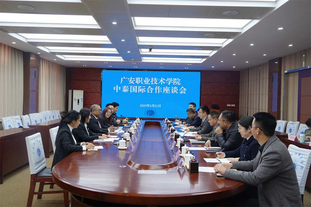 3月21日,泰国中部四区职业教育中心主任帕努潘·帕塔尼一行到校开展中泰职业教育合作,党委副书记、校长王义全出席活动,党委委员、副校长袁驰,党委委员、副校长、智能制造与汽车工程学院院长李俊泓陪同出席。