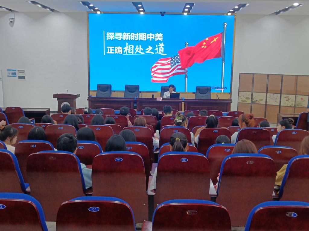 为拓宽师生国际视野,提升他们对国际关系的理解,5月7日下午,学校党委委员、纪委书记王宇平以《探寻新时期中美正确相处之道》为主题,在先圣厅为经济与旅游管理学院师生讲授了一堂生动精彩的形势与政策课。