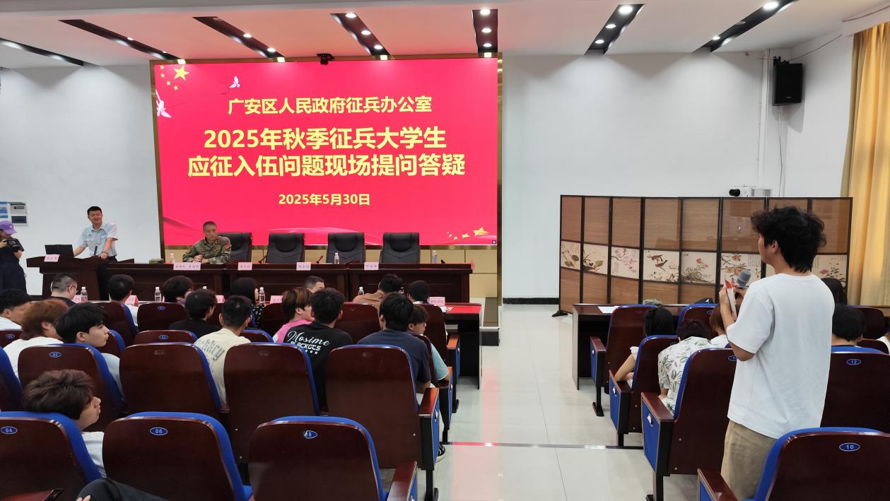 在现场提问答疑环节,同学们积极踊跃提问,叶启涛就军兵种和参军地域知识、大学生入伍政策、征兵体检等内容向同学们进行了现场解答,为同学们解开了心中的疑惑,让同学们更加了解了大学参军入伍政策。