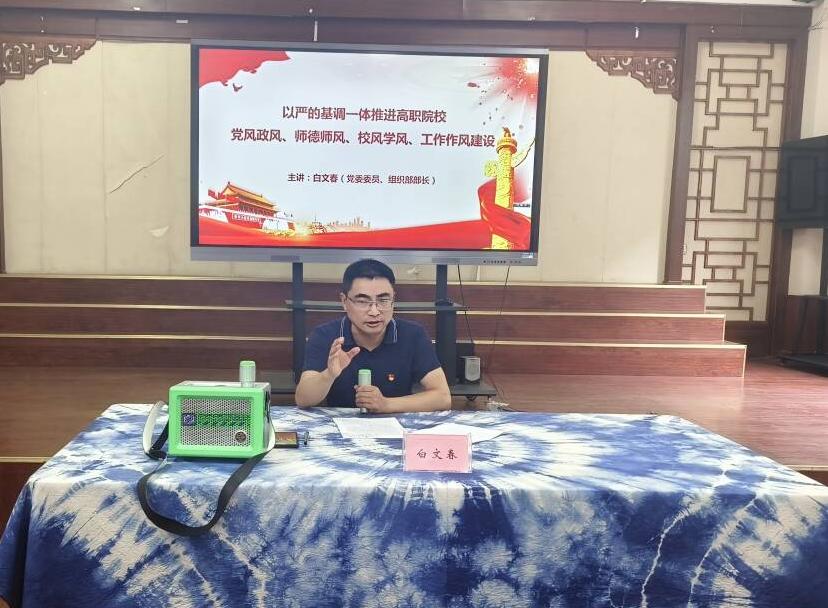 6月19日,学校党委委员、组织部部长白文春为艺术与设计学院师生党员带来一场以“以严的基调一体推进高职院校党风政风、师德师风、校风学风、工作作风建设”为主题的生动党课。