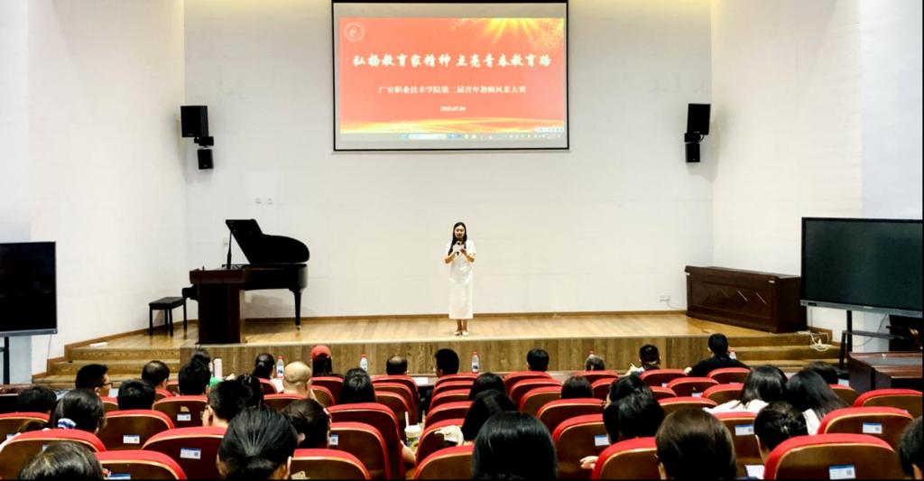 7月4日下午,为深入践行“四有”好老师标准,全面加强教师队伍建设,提升青年教师综合素质,学校在滨江校区翔凤厅举行了以“弘扬教育家精神点亮青春教育路”为主题的第二届青年教师风采大赛。各二级学院及职能部门负责人、教师代表150余人现场观摩。