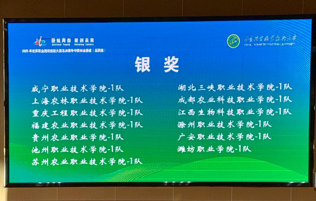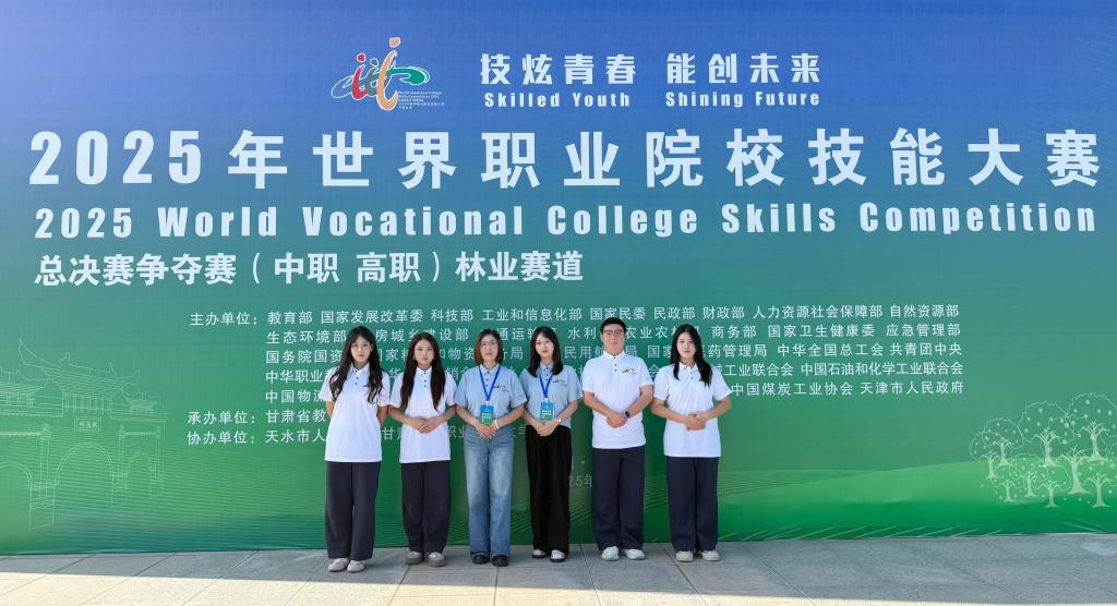 8月27日至30日,2025年世界职业院校技能大赛总决赛争夺赛高职组林业赛道比赛在甘肃林业职业技术大学成功举行。本次赛事以“技炫青春能创未来”为主题,吸引了来自全国75所高职院校的340名选手同台竞技。经过激烈角逐,由伟德建筑工程学院张淑琴、聂梦晓老师指导,园林技术专业陈秀、林鑫、刘露、张坤洋同学组成的代表队,凭借出色的表现,斩获银奖,位列小组第二名。