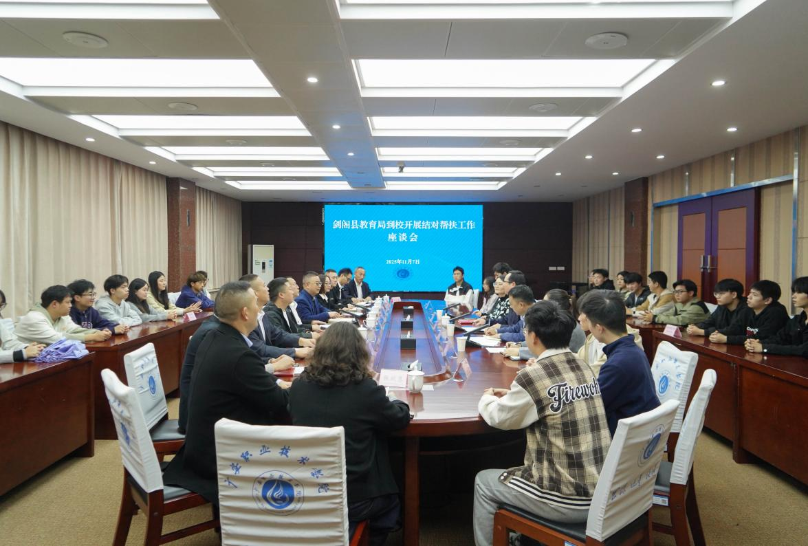 11月7日下午,剑阁县教育局带队到校开展交流工作,双方在学校春晖楼四楼会议室召开结对帮扶工作座谈会,会议由学校党委委员、宣传统战部部长孔新海主持,招生就业处及相关二级学院负责人参加。