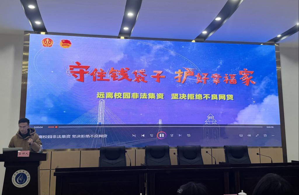 学校党委副书记陈鹏和广安市财政局副局长张杰分别发表讲话,强调了普及金融知识对维护校园安全、保护学生权益的重要性,号召同学们主动学习金融法规,增强风险防范意识。