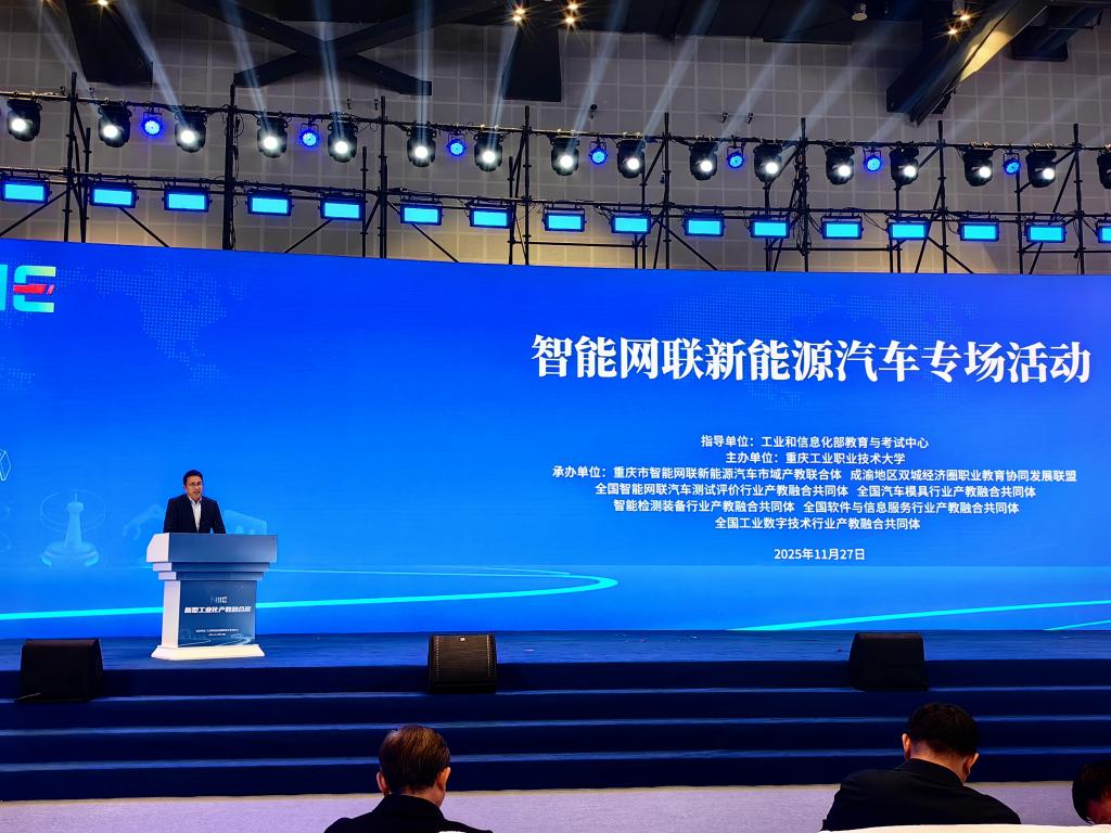 11月27日下午,工信部教育与考试中心主办的新型工业化产教融合展智能网联新能源汽车活动在重庆科学会堂举行,学校党委副书记、校长王义全应邀出席并主持第二阶段活动。