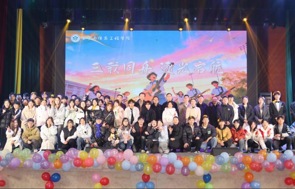 12月17日晚,电子与信息工程学院在滨江校区杏坛举办了以“三载同舟,逐光启航”为主题的大三欢送会。学校党委副书记陈鹏,党委委员、宣传统战部部长孔新海等校领导,学生工作部部长张义桥及相关部门负责人,学院全体领导班子、辅导员(班导师)、专任教师代表,各兄弟二级学院团学联干部、学院2026届全体毕业生应邀参加晚会,共同见证这场温情与活力兼具的毕业献礼。