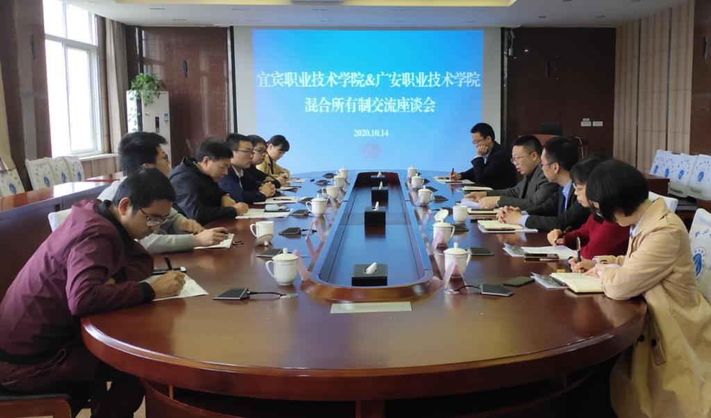 10月14日,宜宾职业技术学院党委委员、副院长古文伟一行来校考察交流。双方在春晖楼四楼会议室举行了混合所有制交流座谈会。校长助理李晓强参加座谈会并讲话,会议由校企合作处处长晏榆洋主持。