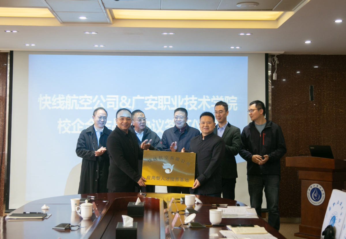 会上,王建平简要介绍了学校发展现状及校企合作取得的成效。王建平表示,在创建应用本科大学目标中,需要情系教育的企业家支持小平同志家乡的教育事业,抢抓成渝双城经济圈建设重大战略机遇,共谋发展大计。 何胜对学校近年来取得的成绩给予了高度评价,重点介绍了国家信息中心与北方航空实业集团、快线航空、湖南货运航空以及中商快线重庆科技教育集团之间的关联关系。何胜表示,通过交流与实地参观,学校的办学现状及前景给他留下深刻的印象,希望能与学校进一步深入合作,搭建资源共享平台,为学校创建应用技术型本科大学提供支持。随后双方签署了校企合作战略协议,并举行了“快线航空有限公司人才培养基地”的授牌仪式。