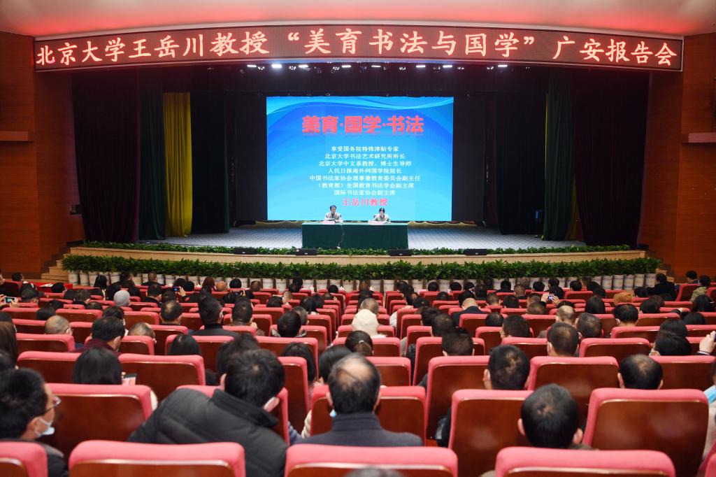 下午,王岳川教授在杏坛为师生做“美育·国学·书法”报告,市委常委、宣传部部长洪丽主持报告会。王岳川教授从美育教育、国学与中国文化地图、中国书法必须守正创新等方面为听众送上一份精彩的文化大餐。全市中小学校长、中小学书法教师代表及学校师生代表900余人聆听报告会。