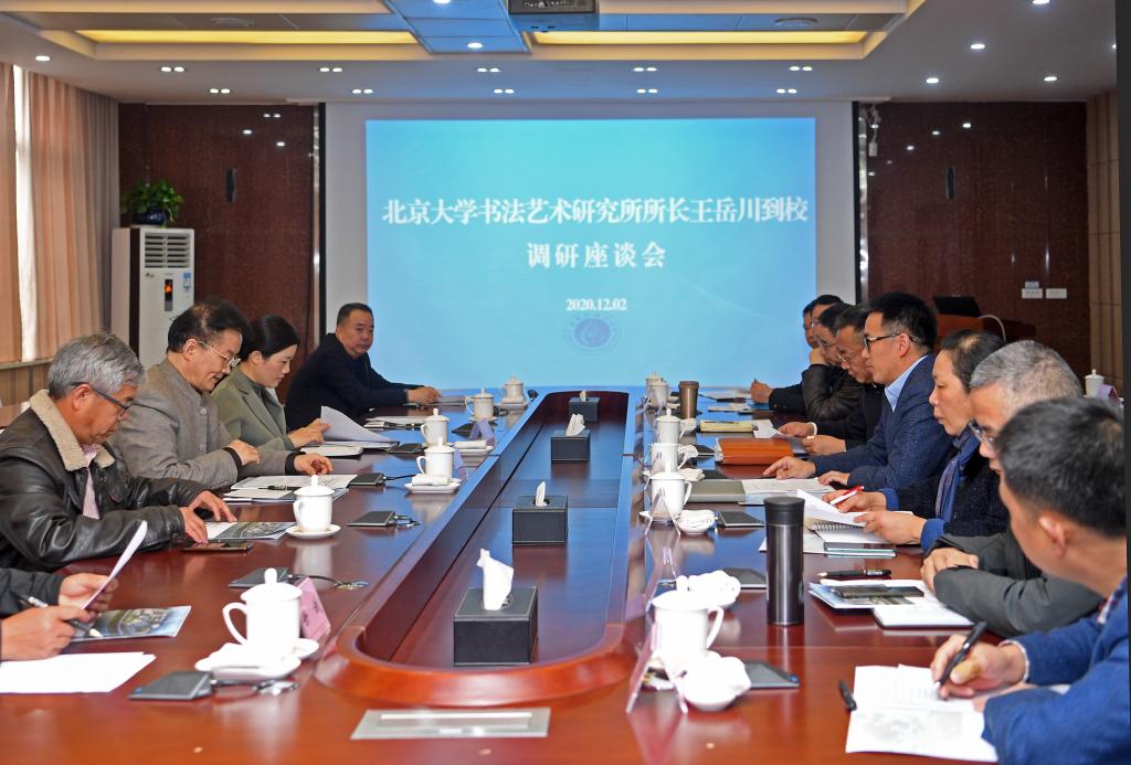 12月2日,北京大学书法艺术研究所所长王岳川教授在市委常委、宣传部部长洪丽陪同下到校调研并座谈,王岳川受聘为学校特聘教授。座谈会由学校党委书记王建平主持。市政府副秘书长徐诚,市委教育工委书记、市教育和体育局党组书记、局长刘贤述陪同调研。
