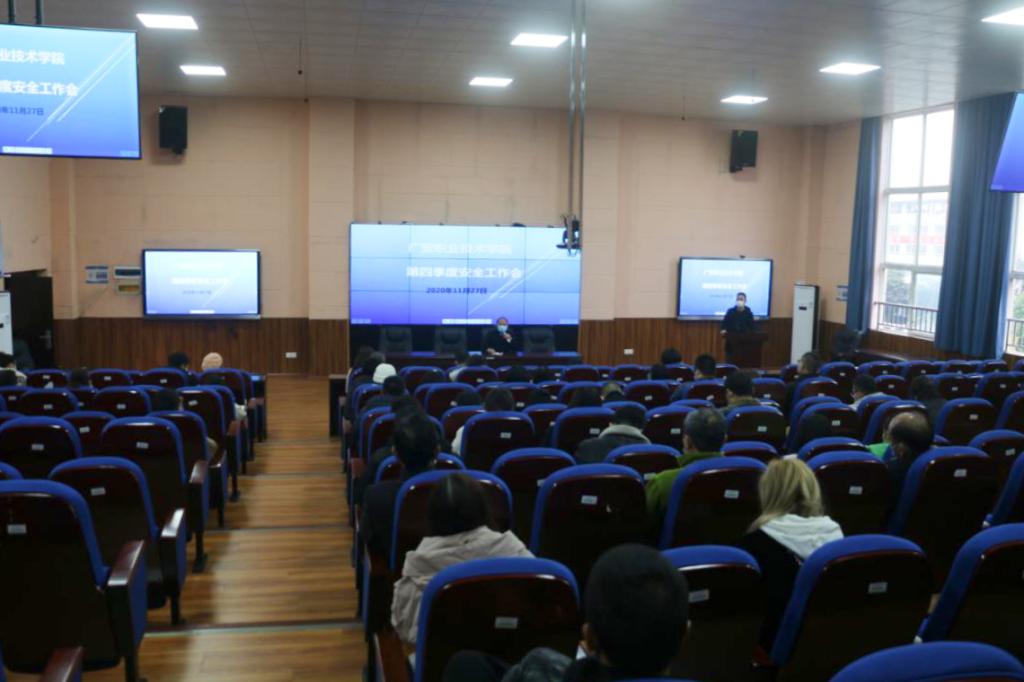 11月27日下午,学校2020年第四季度安全工作会在致用楼阶五召开。学校党委委员、学工部部长杨建华,各部门安全负责人、二级学院书记、分管学生工作副院长、学生管理科科长及干事参会。会议由保卫处处长黄宏芮主持。
