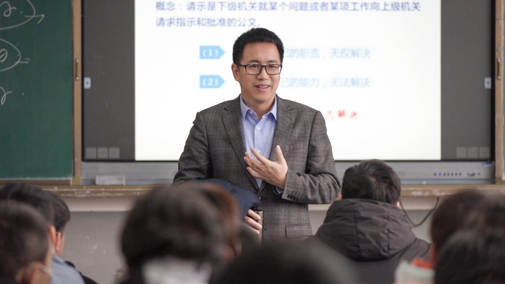 为深入了解教育教学情况,督导课堂教学质量,指导青年教师提升教学能力和水平,12月14日上午,学校党委副书记、校长王义全教授深入教学一线听课,并以“如何用好请示和报告”为主题,讲授了一堂生动精彩的《应用文写作》示范课。