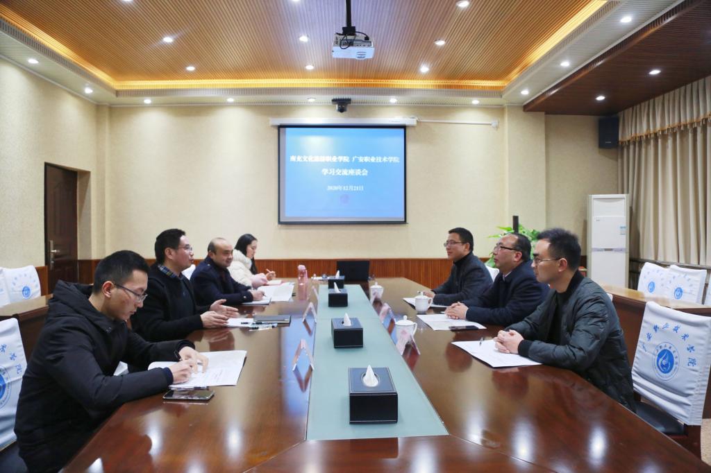 12月21日下午,南充文化旅游职业学院院长杨建平一行来伟德考察交流工作,学校党委委员、副校长邓廷奎在春晖楼三楼会议室参加座谈。