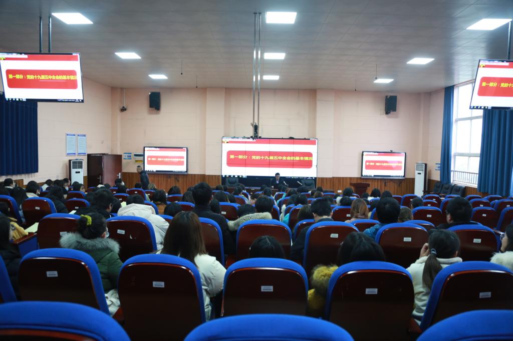 12月23日,学校党委副书记、校长王义全在致用楼紫金厅以“学习党的十九届五中全会精神”为题,为120余名师生上了一堂生动而精彩的形势与政策课。