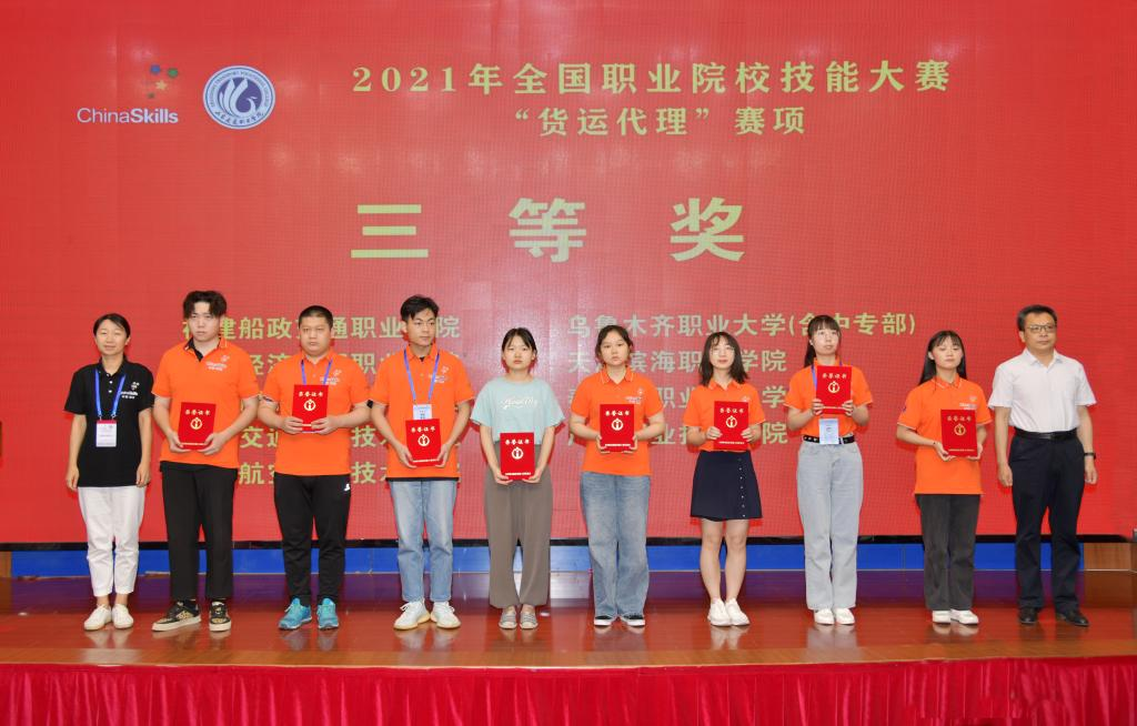 本赛项是由教育部、山东省人民政府、中国物流与采购联合会等36个部门共同主办,来自全国29个省市区的29支代表队的选手着重围绕货运代理工作中的组织管理、客户关系、商务贸易、成本价格、信息和通信技术、应急管理等赛项进行比拼,全程英文参赛。在两天的比赛中,师生勠力同心,克难攻坚,最终取得2021全国职业院校技能大赛货运代理赛项三等奖的好成绩。