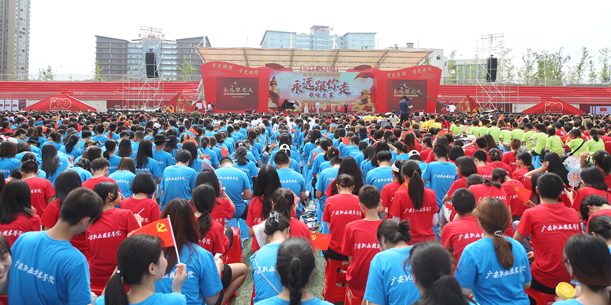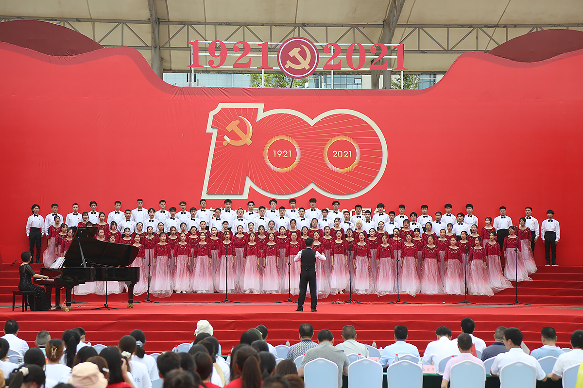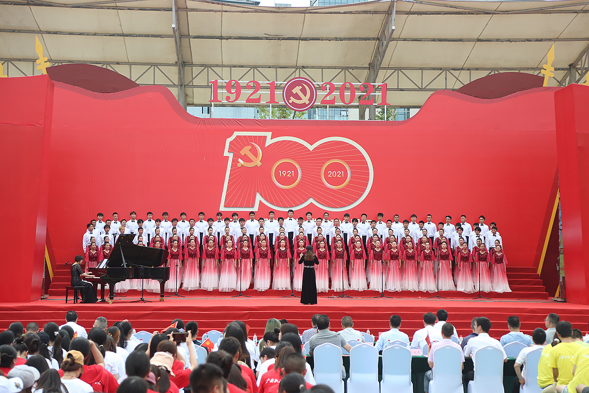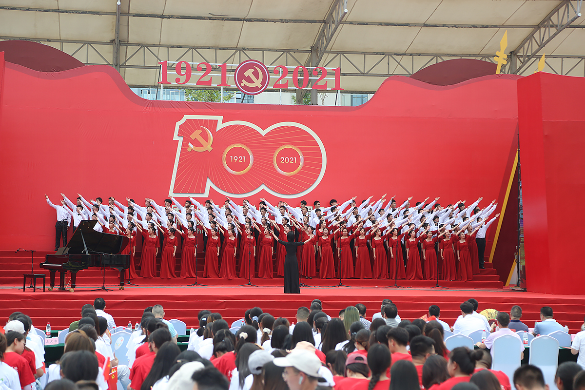 “万水千山不忘来时路,鲜血浇灌出花开的国度”、“唱支山歌给党听,我把党来比母亲”……6月21日,飞扬的歌声从医学院体育场传出,学校“永远跟你走——庆祝中国共产党成立100周年合唱比赛”在奎阁校区精彩上演。来自各二级学院、广安技师学院、华泰医院等10支队伍轮番登台、深情演绎,唱响了爱党爱国爱社会主义的时代主旋律。