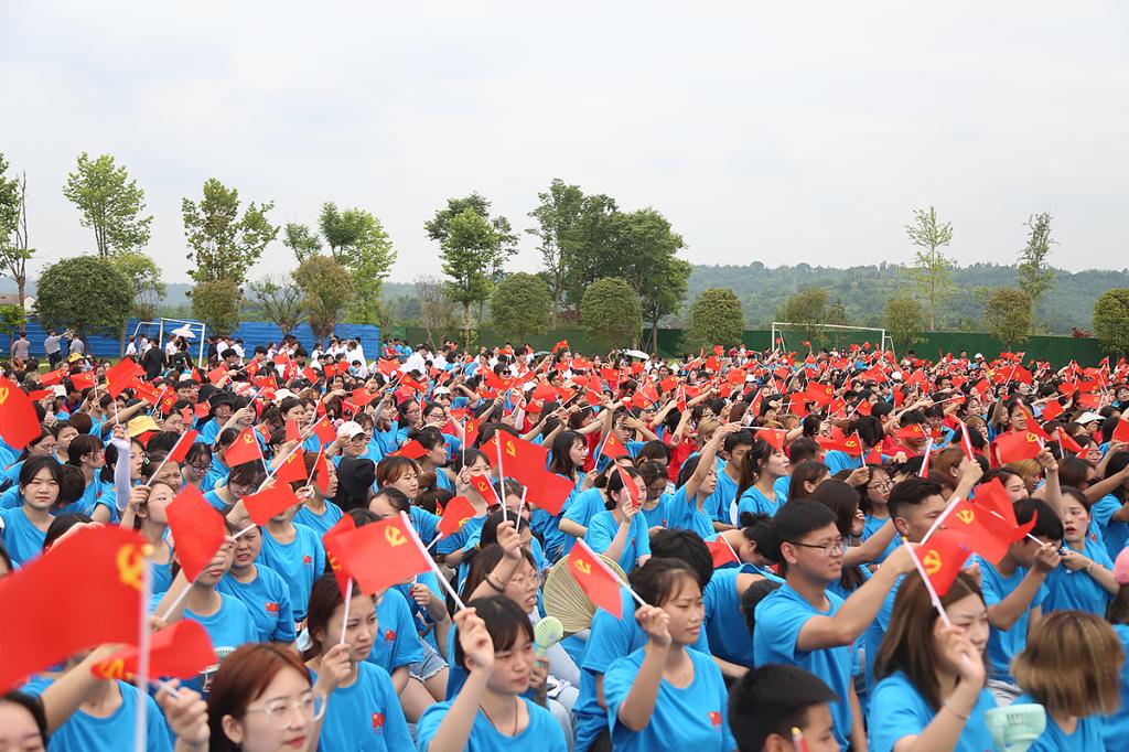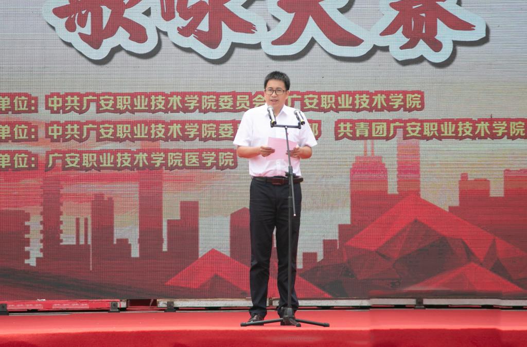 广安经开区党工委书记杨世章,共青团广安市委书记余东洋,学校党委书记王建平,党委副书记、校长王义全等领导和近万名师生共同观看了比赛。
