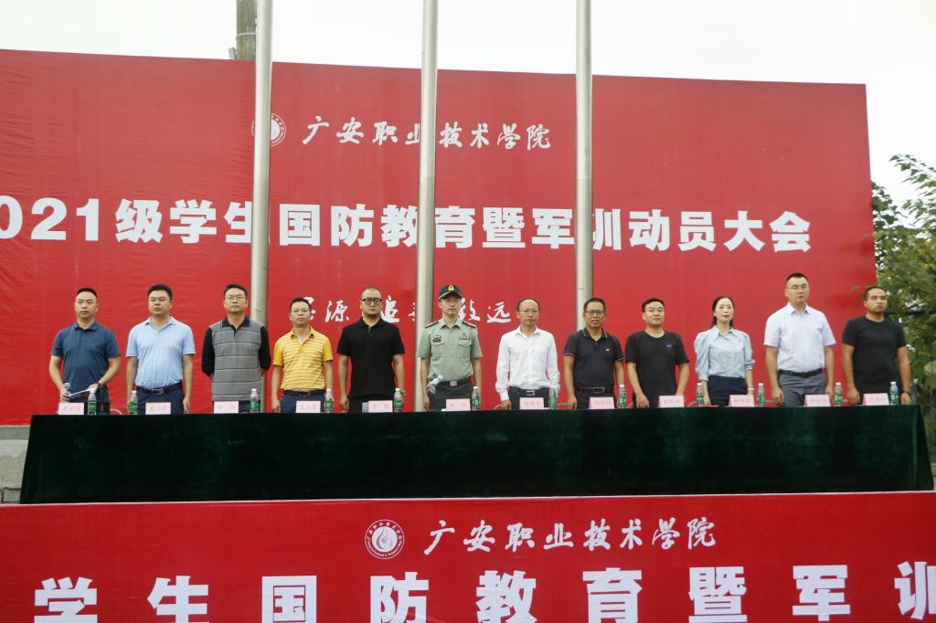9月16日下午,伟德2021级学生国防教育暨军训动员会在学校田径场隆重举行。广安区区委常委、区人武装部上校政委朱斌,学校党委委员、统战部部长杨建华,各二级学院党总支书记,相关部门负责人,军训教官,各连队指导员及全体新生参加了动员会。会议由武装部部长、保卫处处长黄宏芮主持。