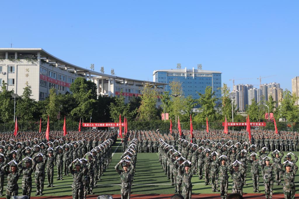 同学们!军训是大学必修课,也是人生重要实践课。十多天来,教官们耐心指导,严格要求;同学们热情饱满,认真训练。骄阳似火不退缩,大雨滂沱仍向前!在刚才进行的军训成果汇报中,同学们精神抖擞,步伐整齐,口号嘹亮,斗志昂扬,全面展示了十多天来的军训成果,全面展现了当代青年大学生的精神风采!在此,我代表学校党委行政,向辛勤承训的教官们致以崇高的敬意!向2021级全体同学在军训中取得优异的成绩表示衷心的祝贺!