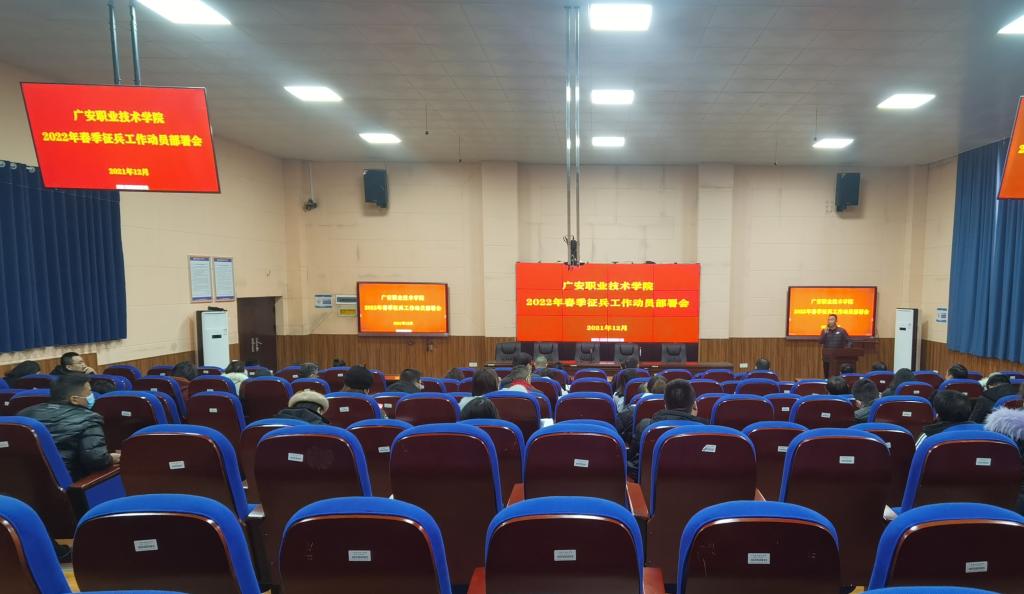 12月10日上午,伟德在致用楼紫金厅召开2022年春季征兵工作动员部署会。学校党委委员、统战部部长杨建华,二级学院党总支书记、副书记、毕业生班导师,招生就业处、学工部、武装部相关人员参加会议。