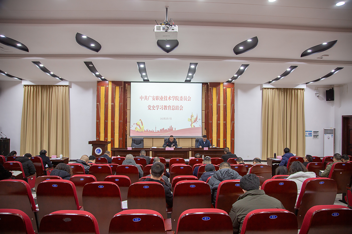 王建平在讲话中指出,党史学习教育开展以来,学校党委紧紧围绕“学党史、悟思想、办实事、开新局”主题,坚持高标准谋划、高质量推进,持续用好广安丰富红色资源,扎实开展专题学习,精心组织宣传活动,广泛开展专题宣讲,深入推进“我为群众办实事”,不断推动党史学习教育走心、走深、走实。王建平强调,学好党史、用好党史是一项长期任务,要把党史学习教育融入日常、抓在经常,不断建立健全常态化、长效化制度机制,不断巩固拓展党史学习教育成果。王建平要求,全校上下要从党的百年奋斗史中汲取智慧和力量,不断加强自身建设,努力推动学校各项工作顺利向前迈进。要坚定不移坚持党对学校各项事业的领导与指导,坚定不移勇于改革、开拓创新,创造性地开展工作,坚定不移敢于斗争,迎难而上、跳起摸高,将规划图变成施工图,一步一个脚印,推动各项重点任务落地落实,坚定不移以自我革命精神推进全面从严治党,持续用力久久为功,锲而不舍正风肃纪,积极构建风清气正的良好政治生态,为学校建设发展保驾护航。