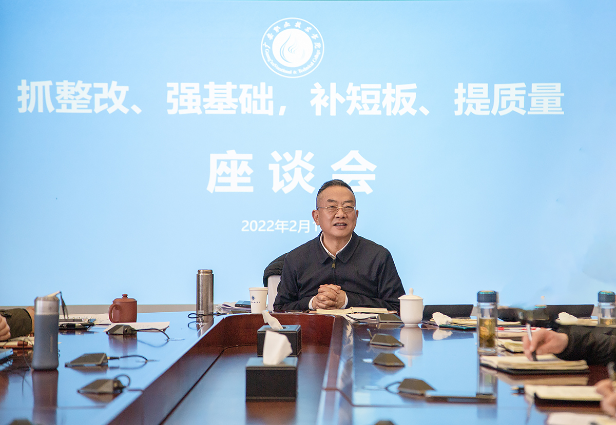 2月18日下午,学校党委书记王建平在春晖楼4楼会议室主持召开“抓整改、强基础,补短板、提质量”座谈会并讲话。学校20余名中层干部和教职工代表参加座谈。