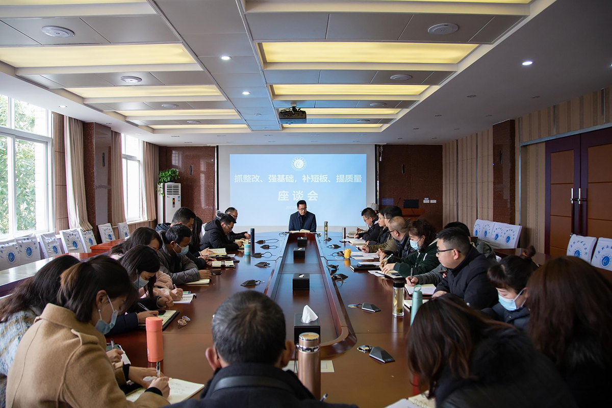 2月22日下午,学校党委副书记、校长王义全在春晖楼4楼会议室主持召开2022年“抓整改、强基础,补短板、提质量”座谈会并讲话。学校22名中层干部和教职工代表参加座谈。