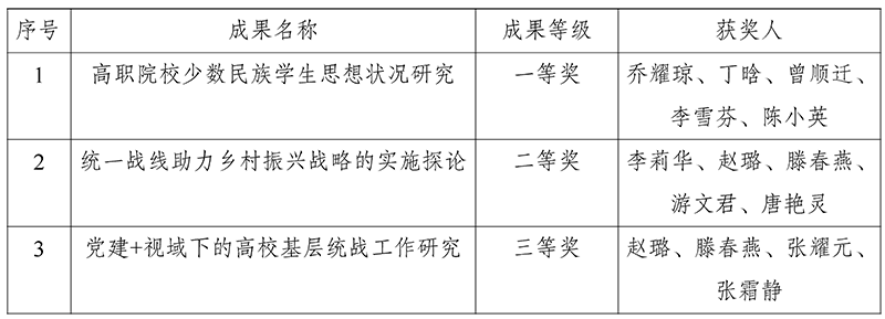 近日,市委统战部通报了2021年度全市统战理论政策研究创新成果,学校获一等奖、二等奖、三等奖各一项。